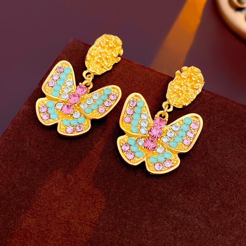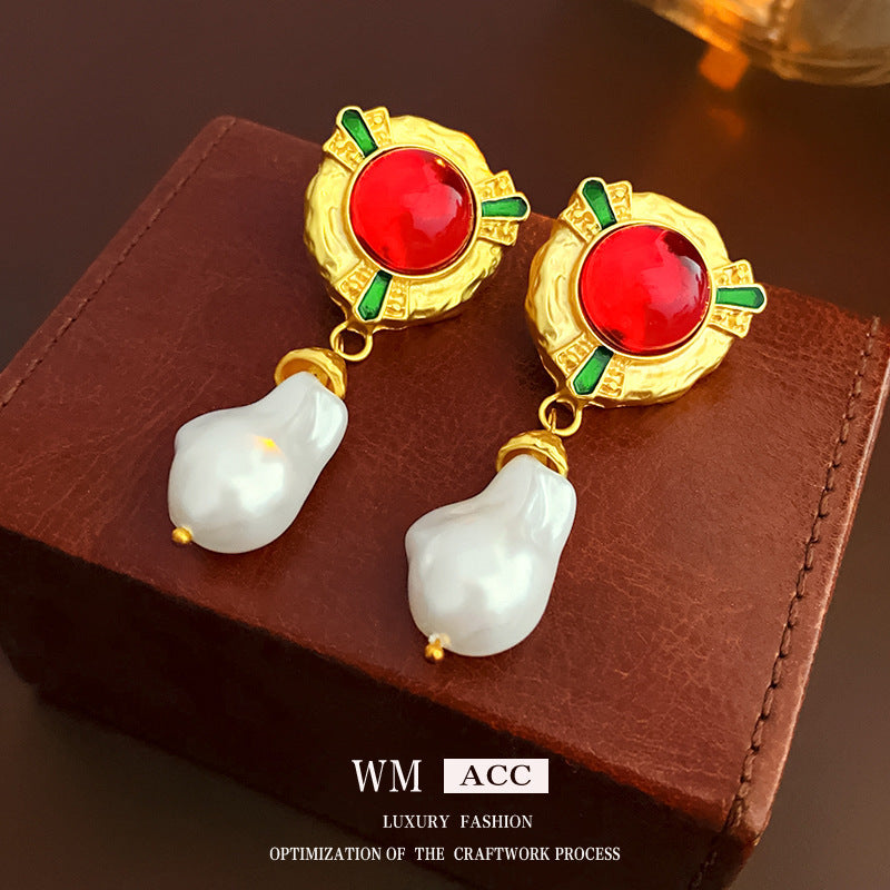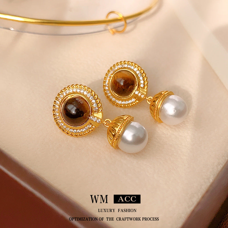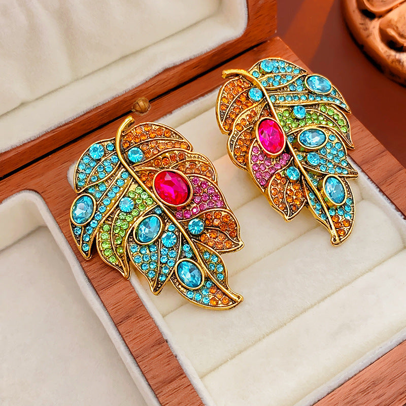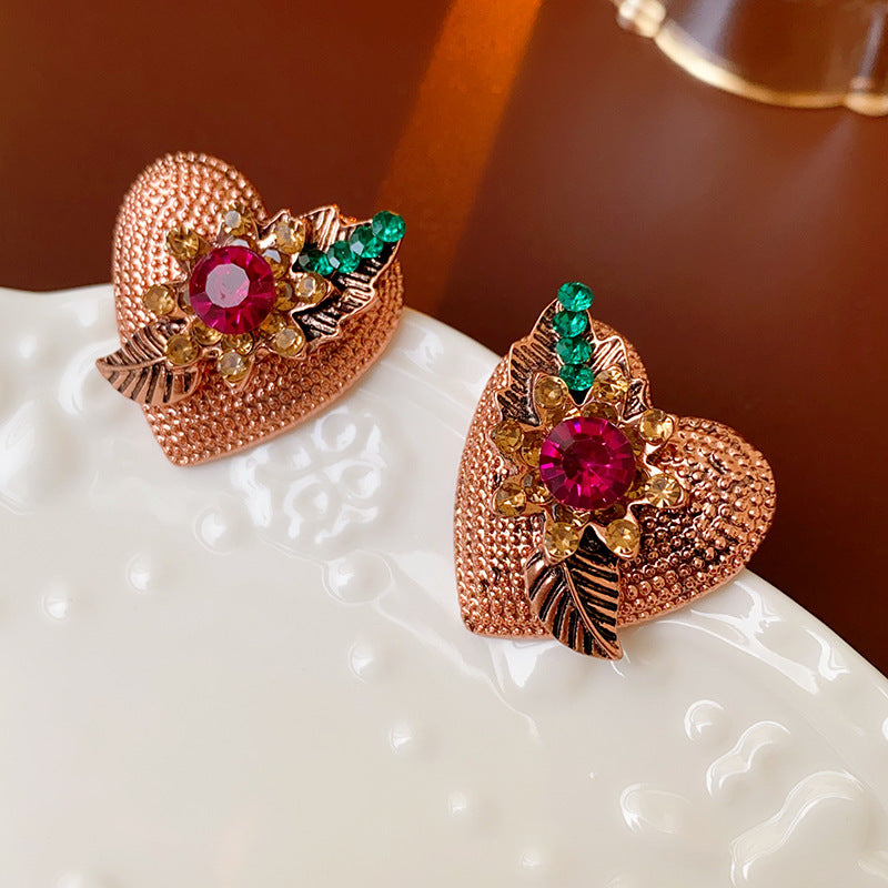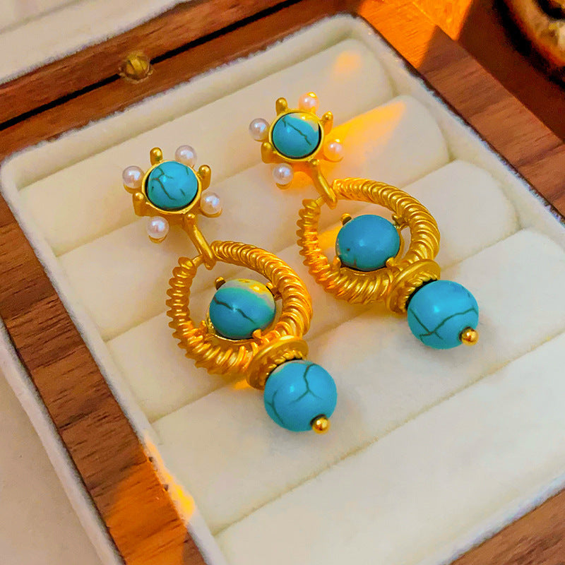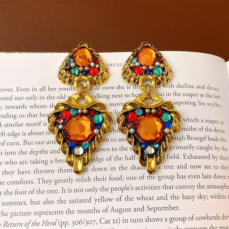 HOT ! Mid-century Modern Round Geometric Copper Diamond Inlay Earrings