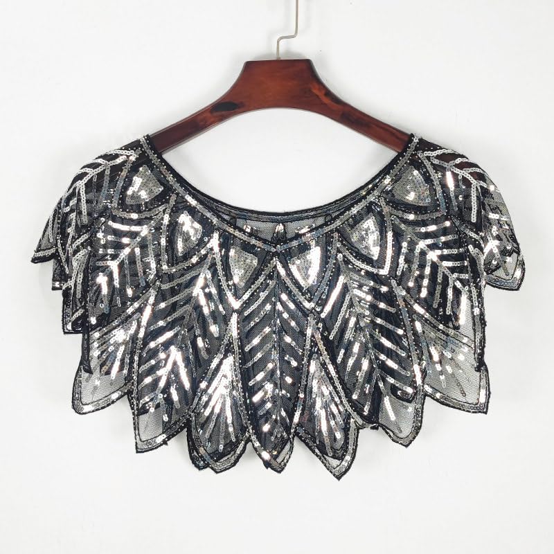 1Pcs Sequins Leaf Lace Flapper Shawl Wraps Vintage Sequin Beaded Evening Cape Women Dress Cheongsam Classic Shawl 1