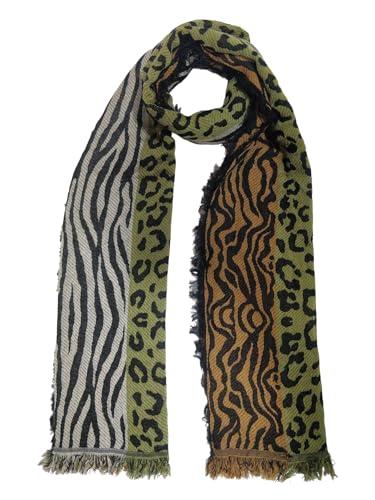 HOT ! Reversible Wool Blend Winter Scarf for Women – 70x180cm Thick & Soft Animal Print Wrap – Green & Gold Leopard Zebra Pattern – Cozy Cold Weather Gift Shawl