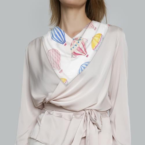 Lovely Hot Air Balloon Square Silk Scarf for Women Fashion Printed Satin Neck Silk Satin Bandana Lightweight Neckerchief Hair Wrap Scarves 23.6" x 23.6" 5