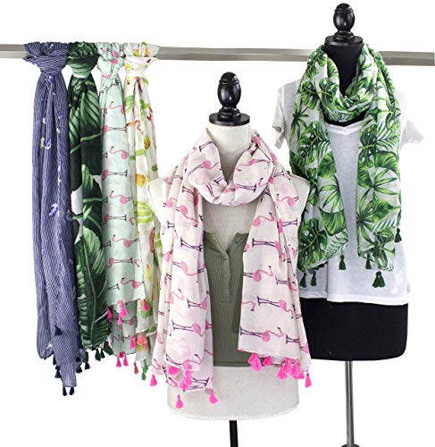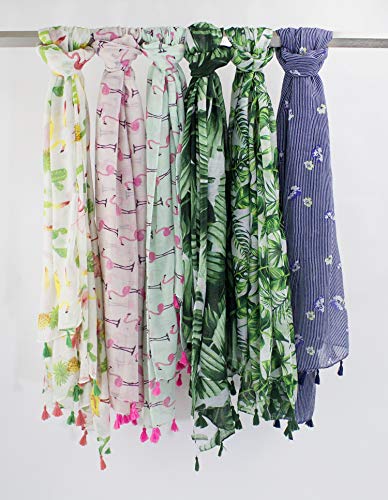stylesilove Womens Cozy Tassels Oblong Cotton Scarf Lightweight Shawls Wrap (Palm Leaf/Green) 6