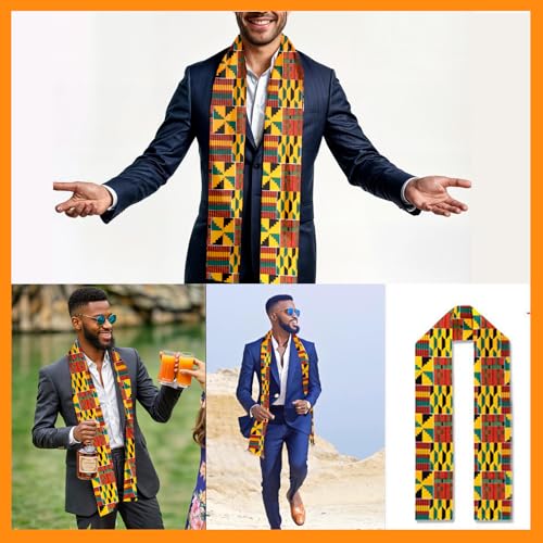 • 【Premium Cotton African Graduation Stole】Lightweight & Breathable Kente Scarf for African American Graduates,71” LONG by 5.5” WIDE
