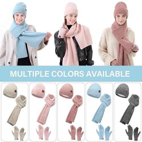 Womens Winter Knit Beanie Hats Touchscreen Gloves Long Scarf Set Warm Skull Caps with Fleece Gifts for Women 5