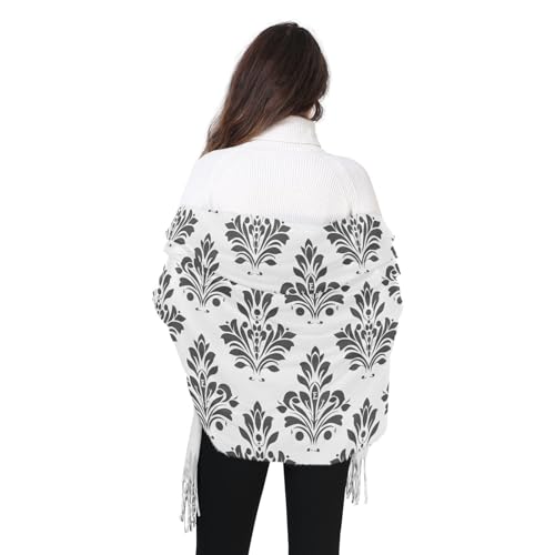 Black Damask Floral Women's Fashion Scarves Long Pashmina Shawls Winter Fall Thick Warm Scarf 86.6 x 30.71 In 1