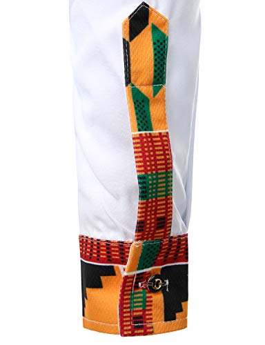 ZEROYAA Men's Hipster African Tribal Graphic Patchwork Design Slim Fit Long Sleeve Button up Mandarin Collar Shirts 6