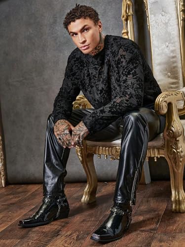 More information about WDIRARA Men's Floral Lace Mesh Party Tee See Through Round Neck Long Sleeve T-Shirt Tops