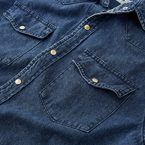 Flint and Tinder Men's Bone Button Western Shirt, Long Sleeve Denim Button-Up with Snap Buttons 4