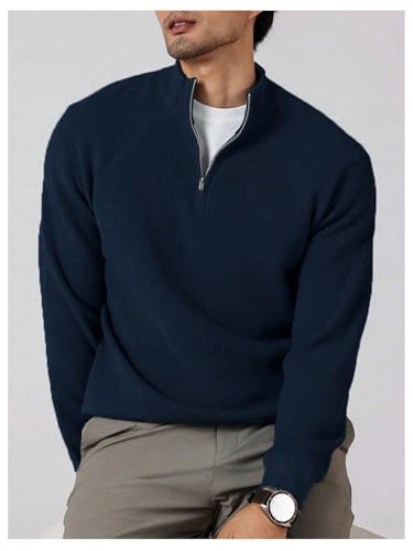 More information about OYOANGLE Men's Quarter Zip Ribbed Sweaters Long Sleeve Mock Neck Slim Fit Pullover Golf Sweater Tops