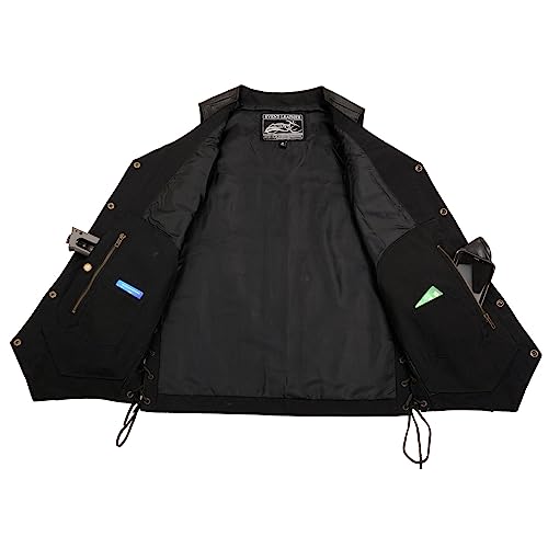 EL5391TALL Black Motorcycle Leather Vest for Men Tall Sizes w/ 10 Pockets- Riding Club Adult Motorcycle Vests 2