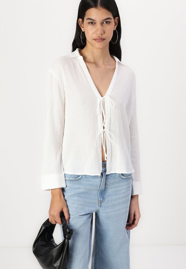 Long-Sleeve Oversized Tie-Front Gauzy Shirt - Blouse 1