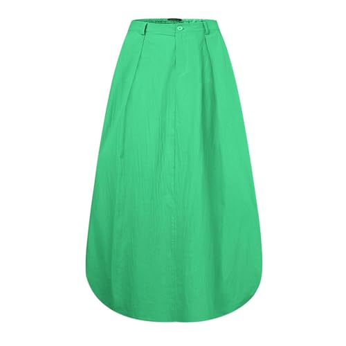 HOT ! Women's Maxi Skirt Summer Pleated Flowy Elastic High Waisted Skirts Casual Loose Fit Solid Clothes with Pockets