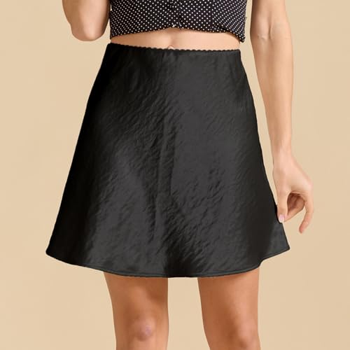 HOT ! Women's 2025 Summer Cute Satin Mini Skirt Elastic High Waisted Casual A-Line Flared Silk Short Skirts for Women