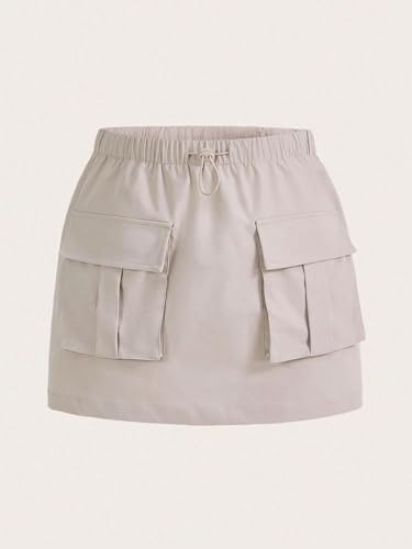 More information about Womens' Solid Color Pocket Drawstring Waist Cargo Skirt Casual Mini Skirts for Women