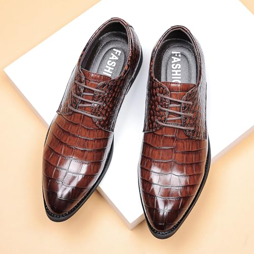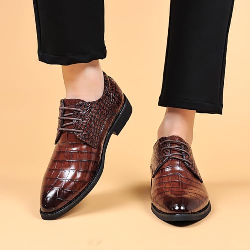 Men's Genuine Leather Lace Up Business Oxford Shoes,Classic Pointed Toe Comfortable Dress Shoes,Elastic Insole,Medium Arch Support,Non-Slip Rubber Outsole 6