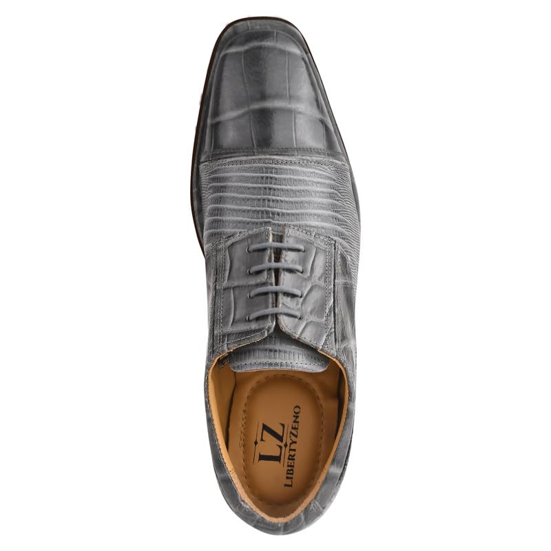 LIBERTYZENO Mens Animal Print Genuine Leather Lace Up Oxford Dress Shoes 6