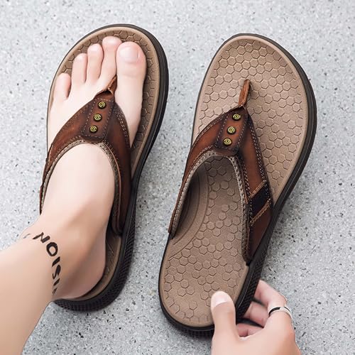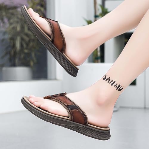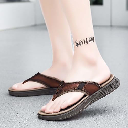 Men's flip flops made of cowhide, casual flip flops, comfortable and lightweight walking sandals 7