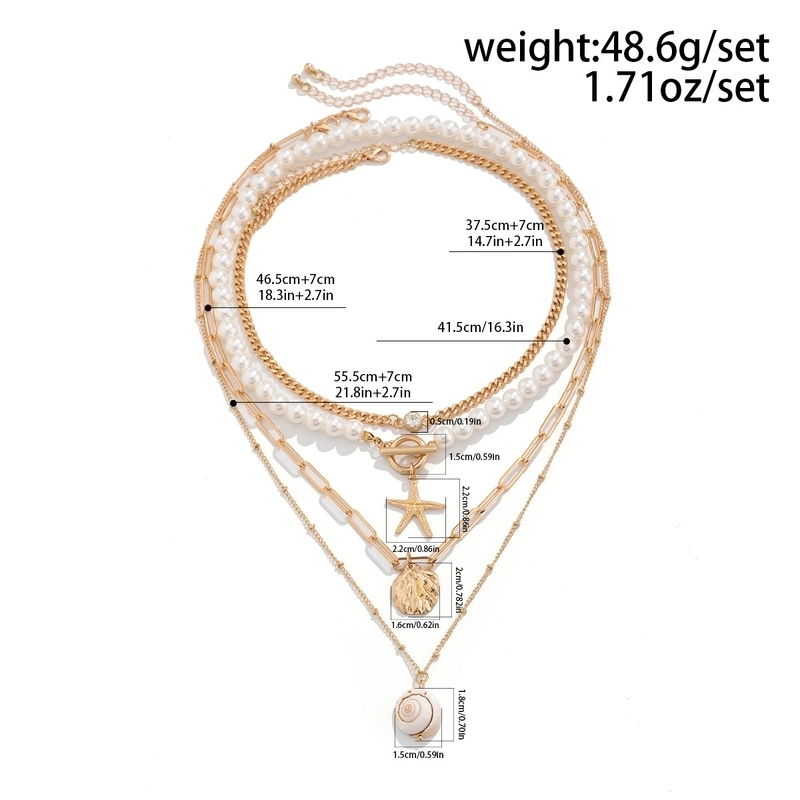 Marine Style Starfish Shell Imitation Pearl Alloy Copper Pendant Necklace 7