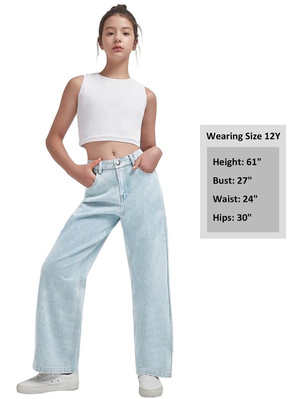 HOT ! EXARUS Girls Wide Leg/Flare Jeans Bow Embroidery/Leopard Print Denim Pants with Pockets Casual for Kids 6-14Y