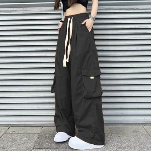 More information about Akklian Fashion Cargo Pants Women Baggy Parachute Pants Y2K Teen Girl Outdoor Drawstring Elastic Waist Pants with Pockets