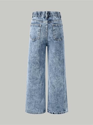 JEYPINMI Girl's Elastic Waist Baggy Trousers Wide Leg Denim Pants Streetwear Trendy Bottoms Bootcut Ripped Jeans 6