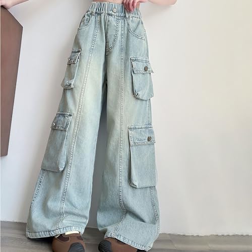 Girls Baggy Straight Cargo Jeans Wide Leg Elastic High Waist Denim Pants Teens Fall Trendy Distressed Streetwear Clothes 6