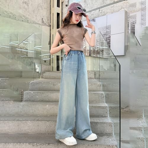 Kids Baggy Denim Pants Girls Elastic High Waist Straight Jeans Loose High Waist Wide Leg Streetwear with Pockets 6