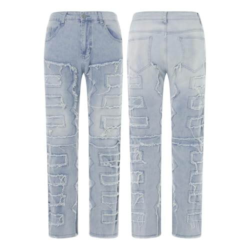 • Size:Straight leg patchwork jeans have S/ M/ L/ XL/ XXL.Y2K jeans men,Slim fit jeans for men Please check the size table before buying.