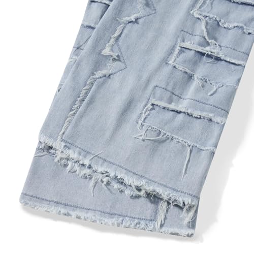 • Features:Ripped jeans men,solid color slim fit jeans for men,raw hem trim giving them a unique look, fashion patchwork pants , straight leg jeans for men, mid-waist, with side and back pockets, button fly closure.
