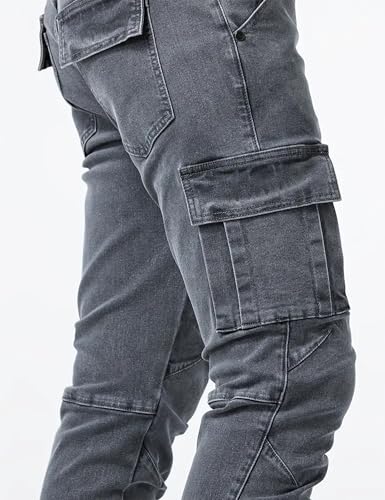 Mens Slim Fit Jeans Cargo Skinny Jeans Denim Stretch Pants Casual Trousers Joggers with Pocket 7