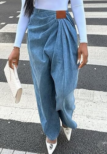 More information about Womens Wide Leg Baggy Jeans Mid Waist Pleated Harem Denim Pants Plus Size Loose Barrel Casual Trousers