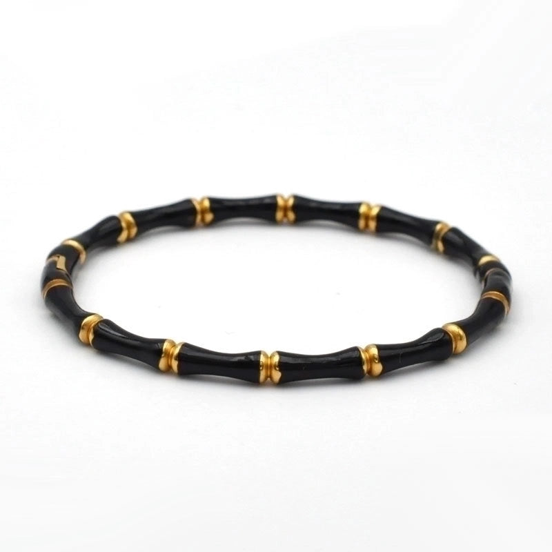 2 Pieces Elegant Vintage Style Bamboo Solid Color Stainless Steel Bangle In Bulk 9