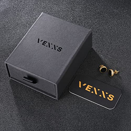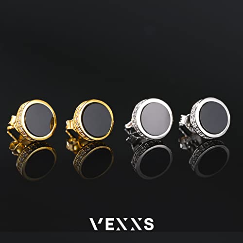 VEXXS S925 Diamond Stud Earrings for Men, 14K Real Gold Plated Iced Out Earrings Micro Pave 5A CZ Stones Men’s Studs, 925 Sterling Silver Earrings, Hypoallergenic Earrings for Men Women Hip Pop Earrings Black Earrings 5