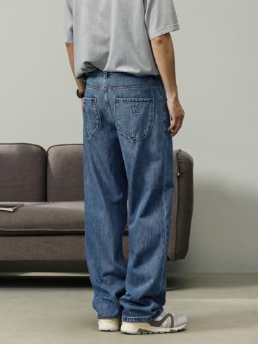 HOT ! Pants Trousers Denim Spring Summer Straight Leg Jeans with Loose Drape Design Mountain Blue Minimalist Versatile