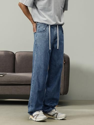 More information about Pants Trousers Denim Spring Summer Straight Leg Jeans with Loose Drape Design Mountain Blue Minimalist Versatile