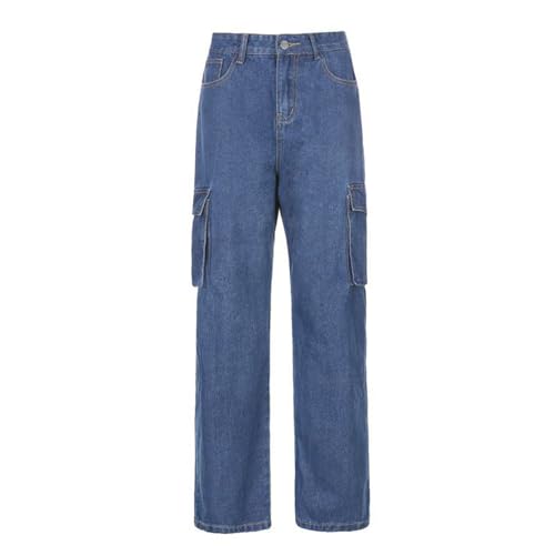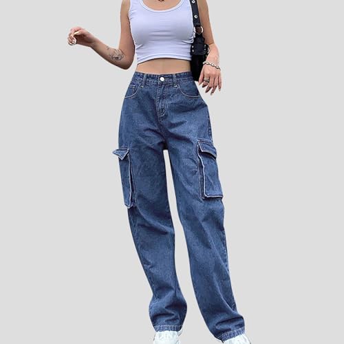 HOT ! Women's Cargo Jeans Straight Leg Baggy Denim Pants High Waisted Boyfriend Jeans with Multi Pockets for Teen Girls