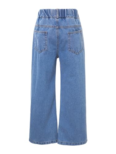 Aislor Kids Girls Jeans Star Patch Ripped Wide Leg Baggy Denim Trousers Elastic Waist Straight Washed Jeans Pants 7