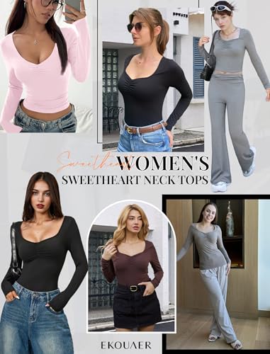 • Easy to Match: This basic sweetheart shirt is a must-have for fall, winter and spring, perfect wear with cargo pants, shorts, jeans, skirt, leggings, cardigan, hoodie, sweater, jacket, high heels, sneakers or boots for a chic and comfy outfit. This thermal shirts for women can be worn alone or layered, and the solid color is versatile.