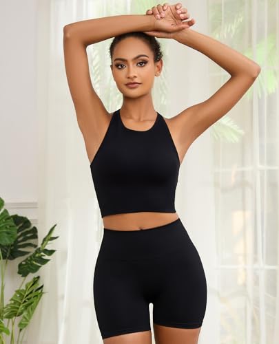 Yoga Sports Seamless Bras for Women Longline Tank Top with Built-in Gym Workout Racerback Bra Tops 6