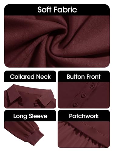 Fisoew Womens Oversized Sweatshirt Dress Long Sleeve V Neck Patchwork Casual Pullover Tops Loose Fit Mini Dresses 2