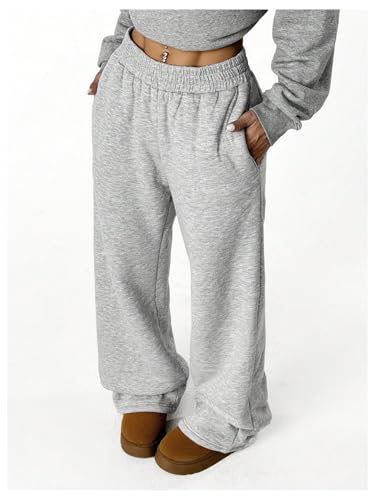 HOT ! SOLY HUX Women's Elastic High Waisted Sweatpants Wide Leg Baggy Fleece Lined Pants with Pockets