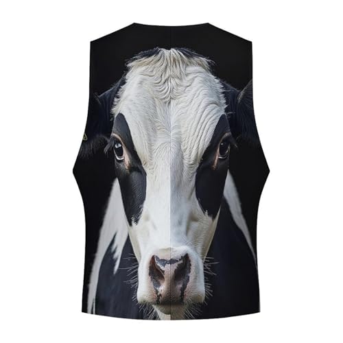 HOT ! Close Up of Black White Cow Men's Suit Vest Slim Fit V-Ncek Waistcoat Business Casual Vest