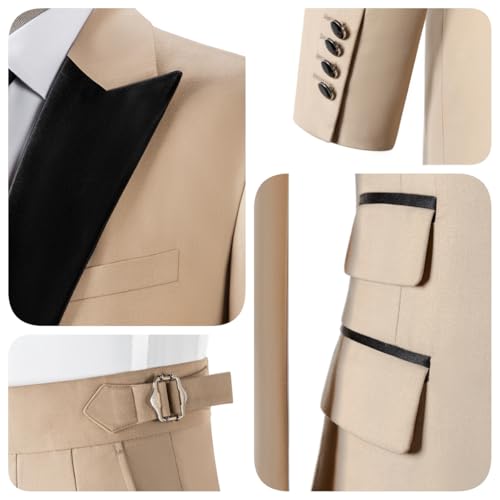 • 2. Features: The unique lapel design makes the suit look very three-dimensional and handsome overall. The waist cinching design will make you look tall and straight, and the pants' silhouette will also make your legs look longer