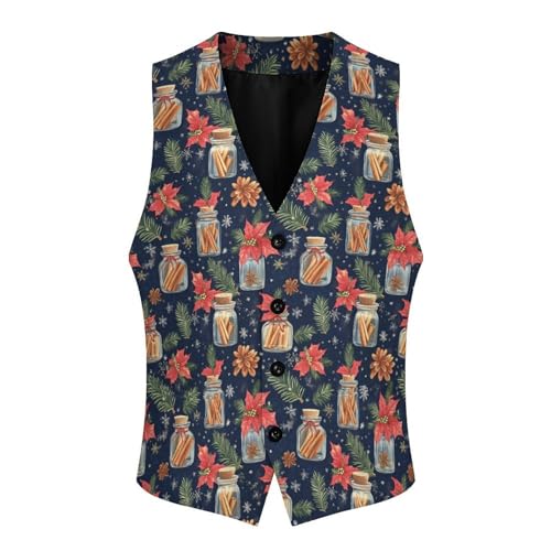 Vintage Glass Jars Christmas Suit Vest for Men Slim Fit Tuxedo Waistcoat Button Down V Neck Business Dress Coat 1