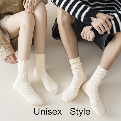 Thick Knit Natural 97% Cotton Crew Socks, All-Cotton Cozy Vintage Casual Socks for Men Women 5