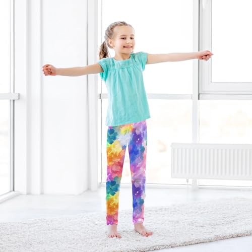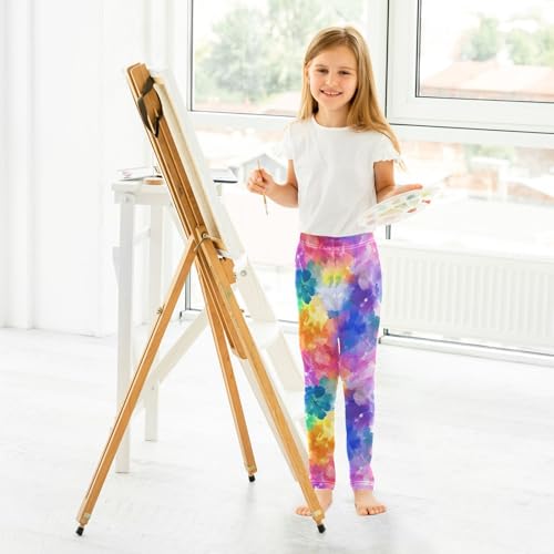 Rainbow Colorful Flower Girls Casual Leggings for Kids Printed Long Pant Bottoms Stretch and Soft 4