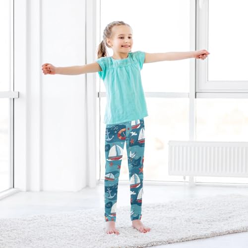 Anchors Sailboat Starfish Cartoon Pattern Girls Leggings Soft Stretch Workout Yoga Dance Pants for Kids Casual Tights 6