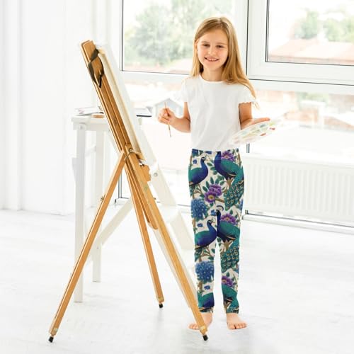Girls Leggings Peacock Flower Tree Soft Toddler Leggings for Girls Kids Pants Size 4T-10T 5