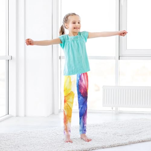 Hibiscus Colorful Rainbow Girls Casual Leggings for Kids Printed Long Pant Bottoms Stretch and Soft 7