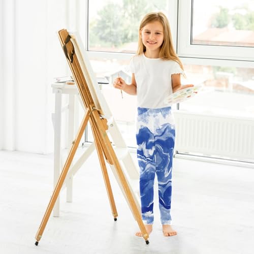 Girls' Leggings Ankle Length Printed Leggings Watercolor Blue Liquid Soft Comfortable Pants for Kids 4-10 Years 6
