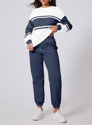 Herseas Womens Long Sleeve Crewneck Color Block Sweatshirt with Jogger Pants 2 Piece Outfits Tracksuit Lounge Set 6